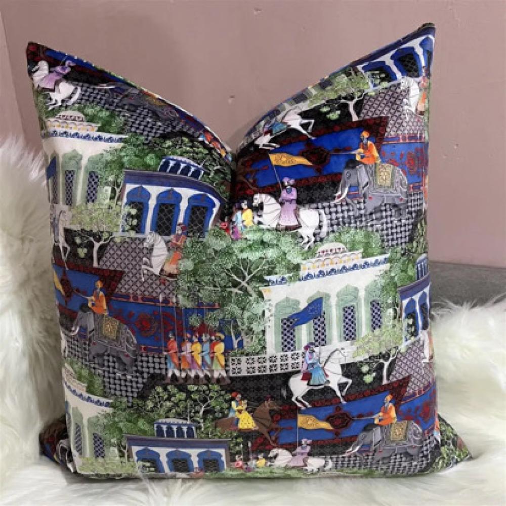 أضف لمسة من الثقافة والتفاصيل الفنية إلى ديكور منزلك مع هذا الغطاء المميز. غطاء وسادة رسومات طبيعية يتميز برسومات طبيعية متقنة تعكس ملامح الحياة في الطبيعة والمظاهر التراثية. مثالي لإضفاء جو من الدفء والجمال على أي مساحة في منزلك.